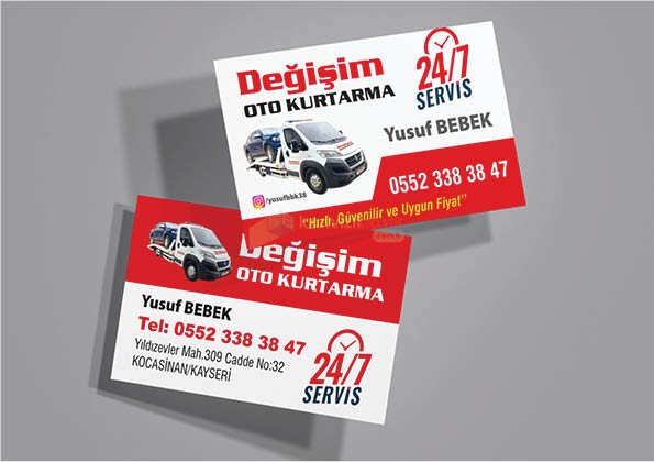 Kartvizit tasarımı, firmanızın kimliğini yansıtır. Logo, renkler ve yazı tipi uyumlu olmalı. Tasarım sade, zarif ve bilgi verici olmalı. Karmaşık arka planlar yerine net bir görünüm tercih edilmelidir.